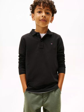 Kids' Tommy Varsity Long Sleeve Polo Top, Pewter Green
