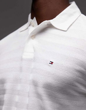 Herringbone Collar Regular Polo Shirt In White