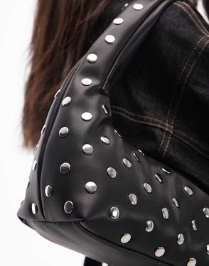 Studded Leather Shoulder Bag In Black