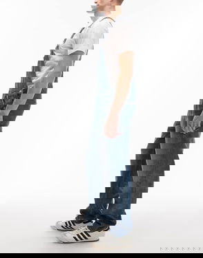 Stonewash Denim Dungarees In Mid Blue