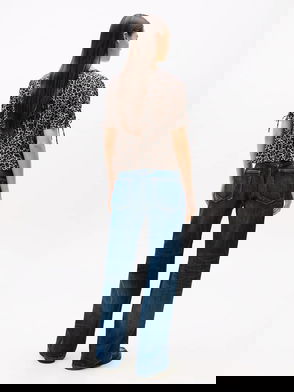 Long Sleeve Regular Fit Crop Poplin Shirt In Blue Stripe