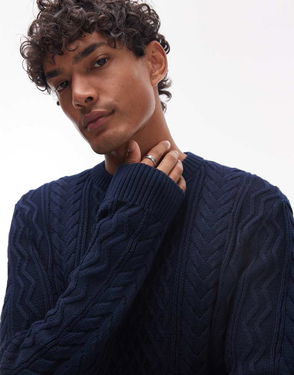 Slim Cable Knit 1/4 Zip Jumper In Navy