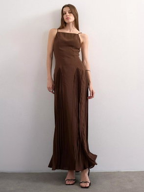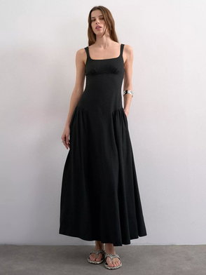 Square Neck Pleat Maxi Dress