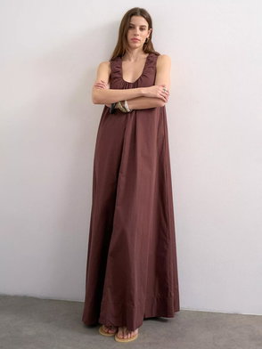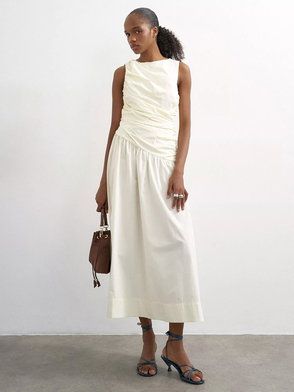 Ruched Neck Sleeveless Cotton Maxi Dress