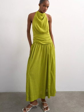 Halterneck Check Maxi Dress