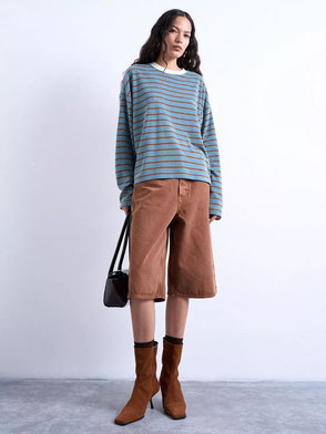 Stripe Long Sleeve Skater Top, Blue/Orange