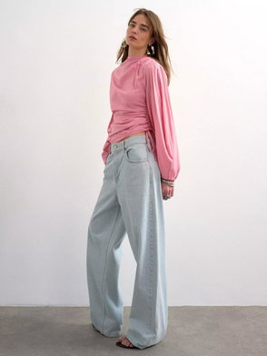 Funnel Neck Relaxed Sleeve Shirt, Rust