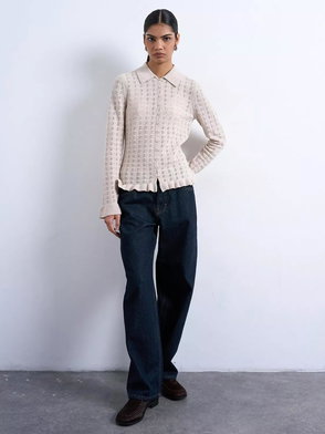 Pointelle Knit Ruffle Top, Oat