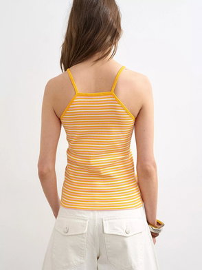 Spaghetti Strap Striped Stretch Cotton Vest, Orange/Multi