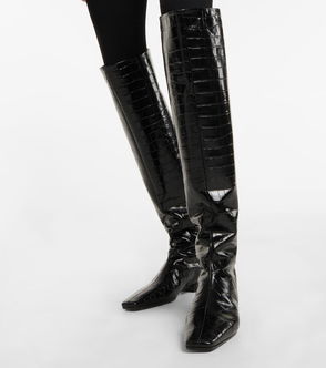 The Wide Shaft Croc-Effect Leather Knee-High Boots
