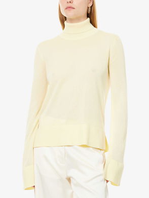 Turtleneck Slit-Sleeve Cashmere-Blend Knitted Top