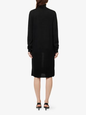 Turtleneck Long-Sleeves Wool And Silk Midi Dress