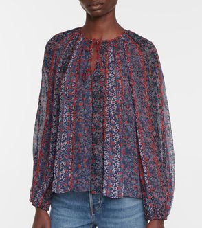 Nadya Off-The-Shoulder Printed Silk-Twill Top