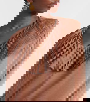 Liv Cropped Checked Shirred Cotton And Silk-blend Bustier Top