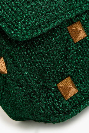 Roman Stud Quilted Metallic Knitted Shoulder Bag