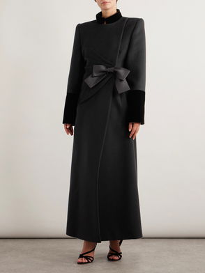 Bow-detailed Velvet-trimmed Wool And Cashmere-blend Coat