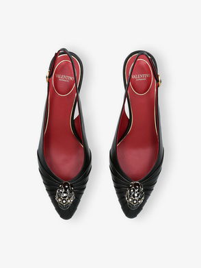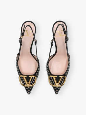 VLogo 80 Pointed-Toe Leather Slingback Courts