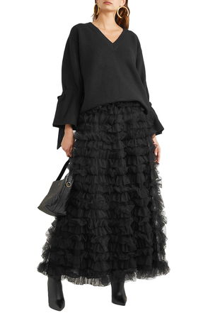 Ruffled Wool And Silk-blend Crepe Midi Skirt