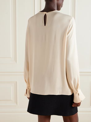Fringed Pussy-Bow Silk-Chiffon Shirt