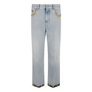 Floral Detail Denim Trousers