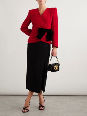 Bow-detailed Ruched Wool-crepe Wrap Jacket
