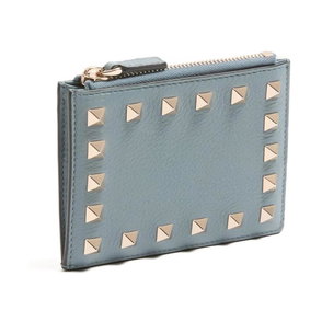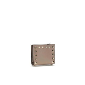Rockstud Grainy Calfskin Cardholder With Zipper