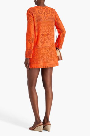 Feather-Trimmed Embellished Jacquard And Woven Mini Dress
