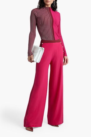 Button-detailed Color-block Silk-crepe Wide-leg Pants