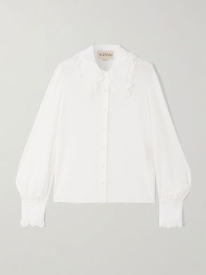 Bead-Embellished Pintucked Silk-Chiffon Shirt