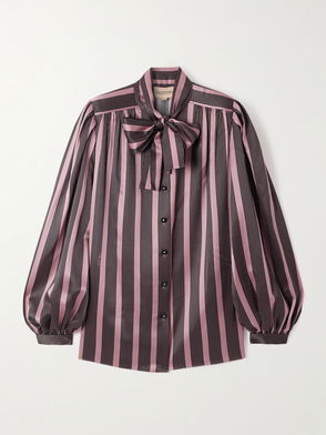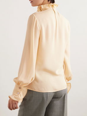 Oversized Pussy-bow Crystal-embellished Tulle Shirt