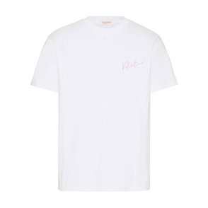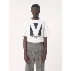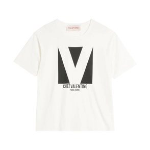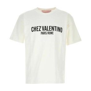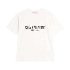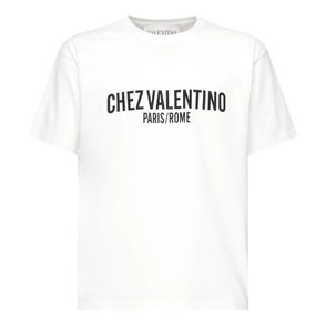Ivory Cotton T-Shirt With Chez Valentino Print