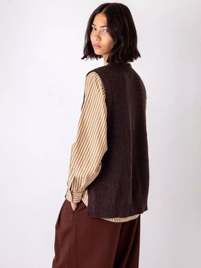 VIVERE Lois Stripe Shirt, Cream/Brown