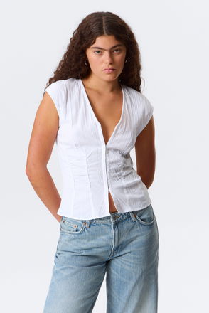 Fitted Short-Sleeved Twill Top