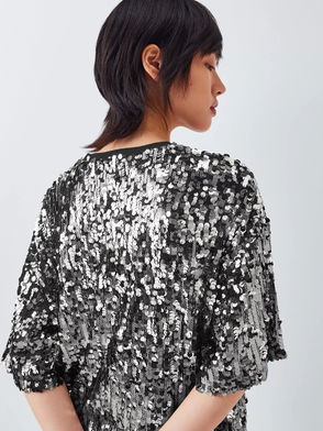Weekend MaxMara Cacao Sequin Top, Black/Silver