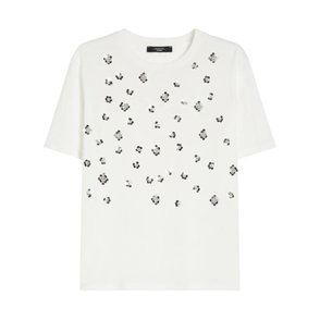 Floral Embroidery Round-Neck Short-Sleeve T-Shirt