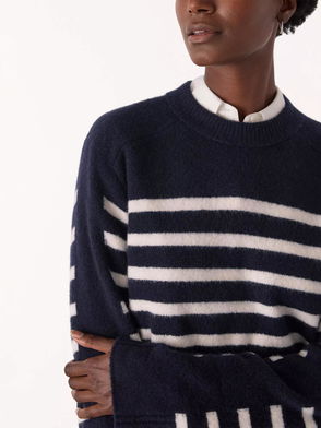 Contrast Stripe Wool Blend Jumper, Navy/Multi