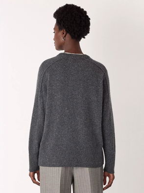 Fleck Seam Pure Cashmere Jumper, Dark Grey