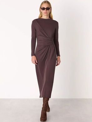 Dark Grey V Neck Cable Ribbed Knit Dress
