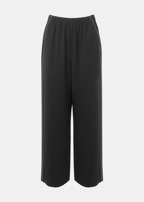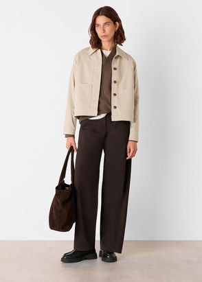 Dark Denim Cotton Wide Leg Pleat Trouser