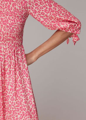 Pink/Multi Cheetah Print Shirred Dress