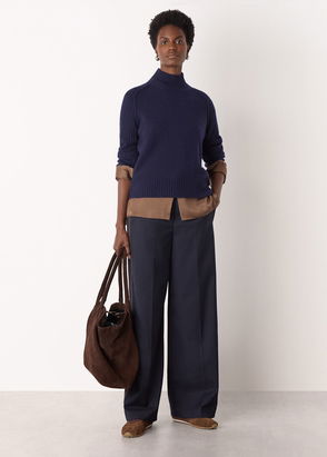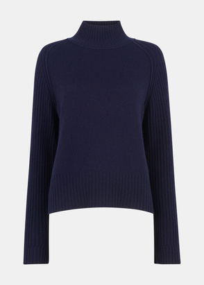 Navy Wool Funnel Neck Knit