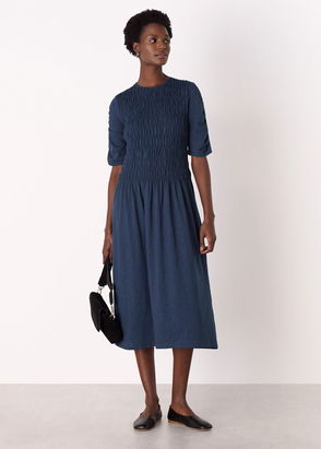 Textured Cotton Midi Dress, Navy