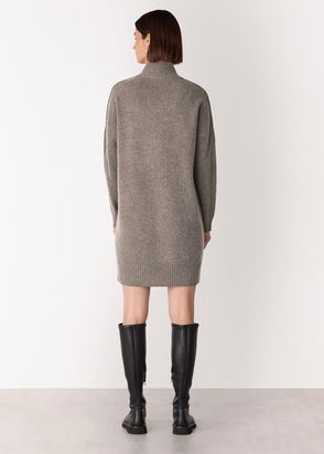 Petite Funnel Neck Pure Wool Jumper Dress, Taupe
