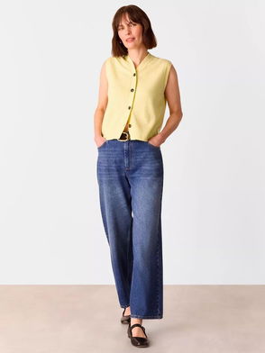 V-Neck Button Front Pure Wool Sleeveless Cardigan, Yellow