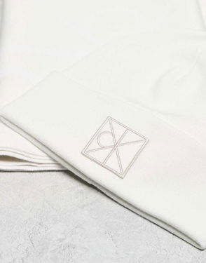 Jeans Monogram Beanie And Scarf Gift Set In Off White