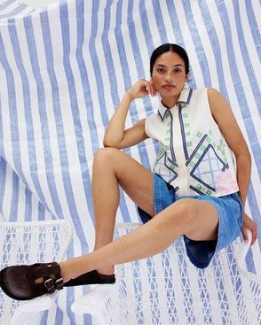 Ecru Cream Cross Stitch Sleeveless Jacket