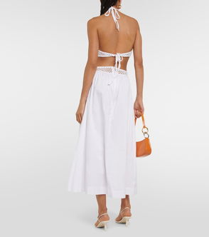 Feather-trimmed Crêpe Maxi Shirt Dress