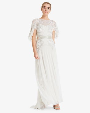 Petite Feather Bardot Stretch Crepe Maxi Dress