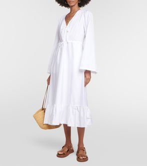 Ruffle-trimmed Asymmetrical Cutout Midi Dress