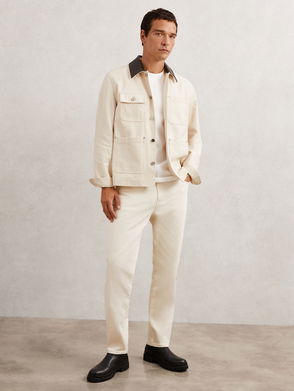 Long Sleeve Herringbone Texture Polo Shirt In White